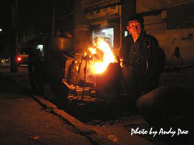 熊熊的爐火,映在老先生佈滿歳月痕跡的臉上,垂老的雙眼也不時注視著壓力表的指數。