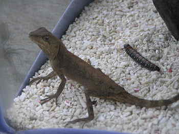 3.飼料之反應:未立即進食,可能以脫離現有環境為優先。在搬入約二小時候,飼料用毛蟲消失,疑遭捕食。